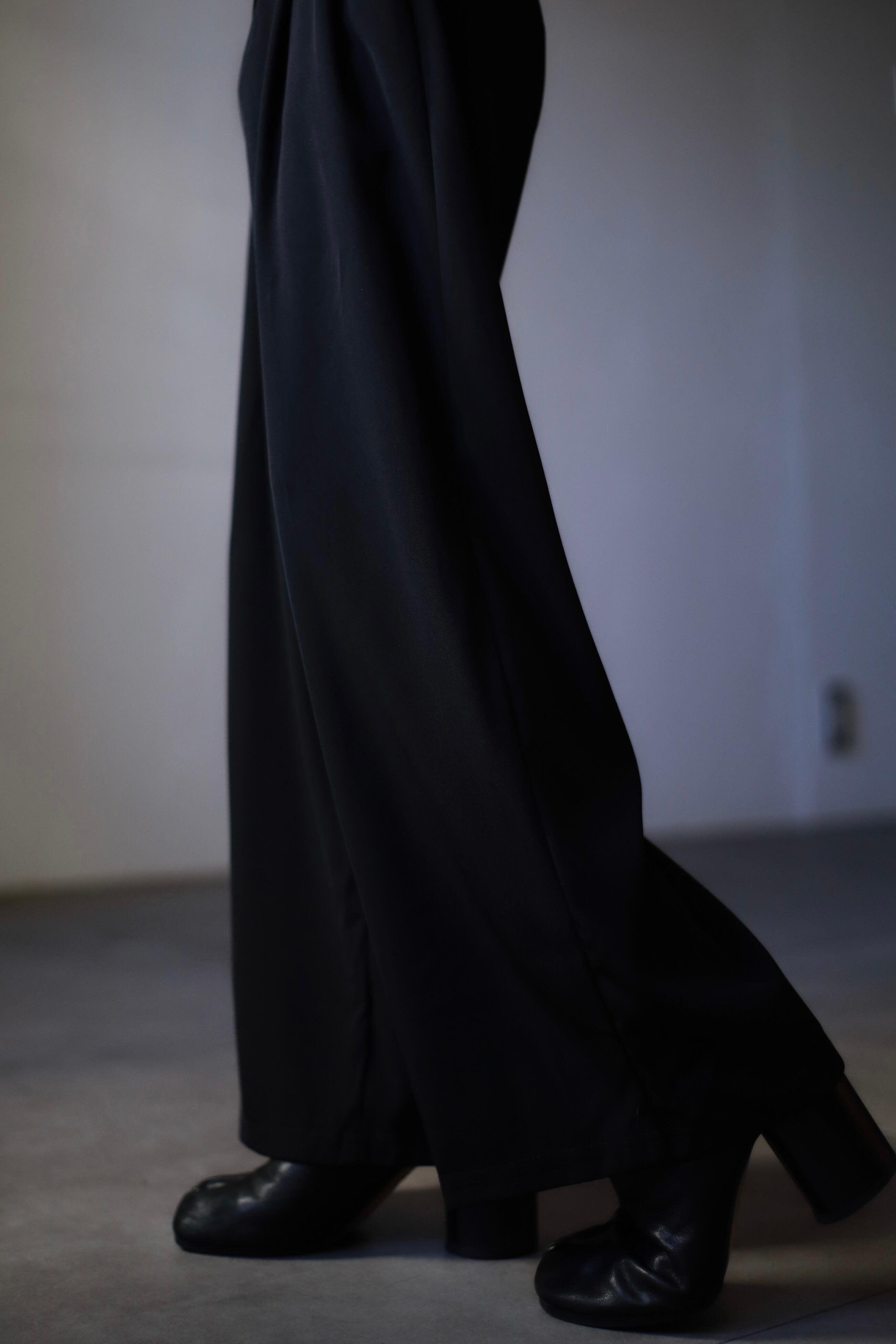 履くだけでスタイルがよく見える美しいシルエットで裾にボリュームがあるので足元の自由度も高く、スニーカーやサンダル、レザー系と何を合わせてもバッチリです。