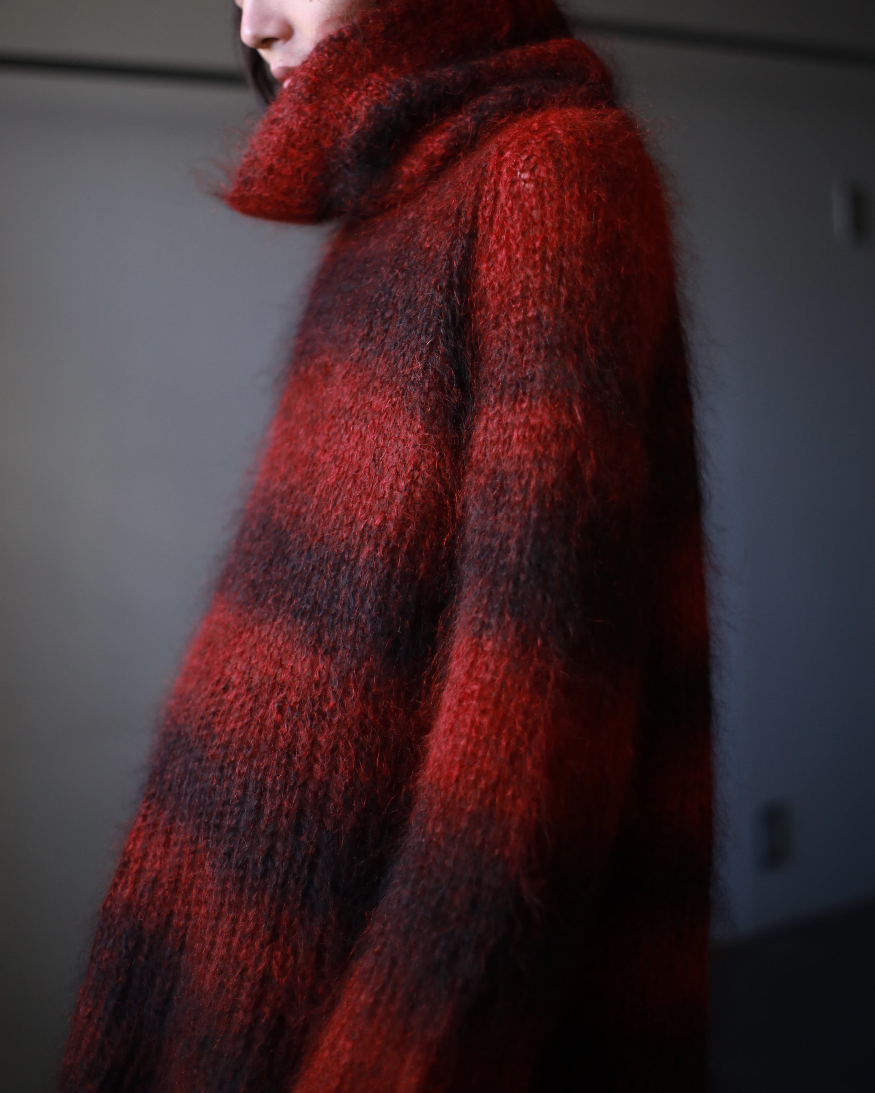 1990s "moke moke" mohair gradation oversized turquoise neck knit
