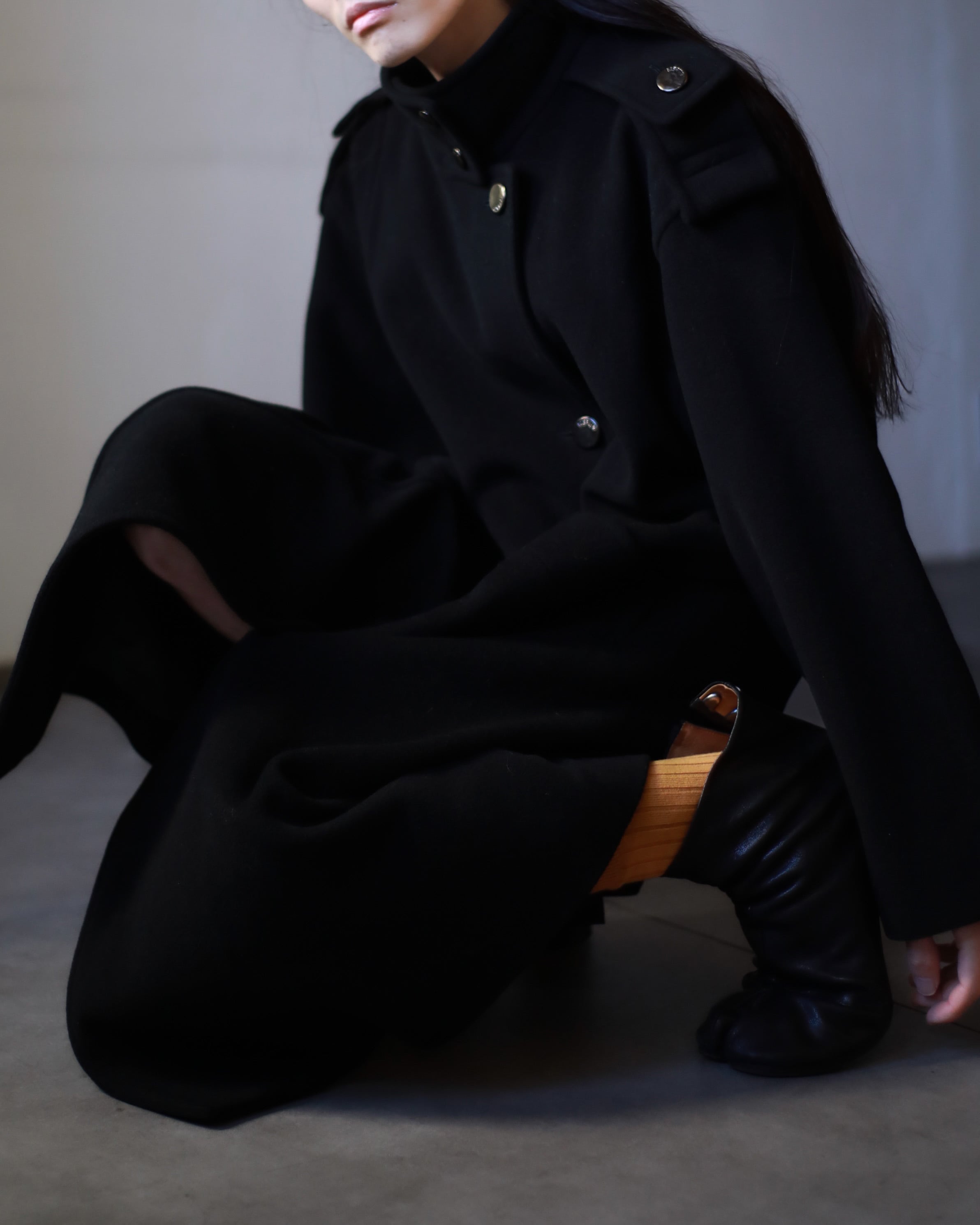 パワーショルダーのコート。