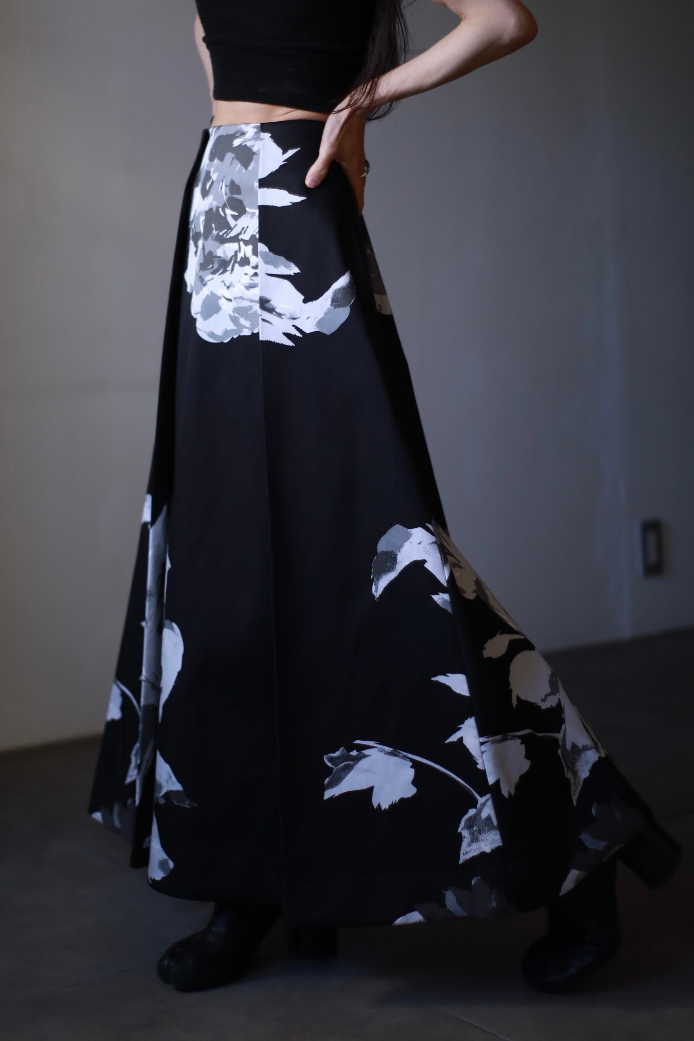 1990s volume 360° tuck botanical pattern heavy fabric skirt