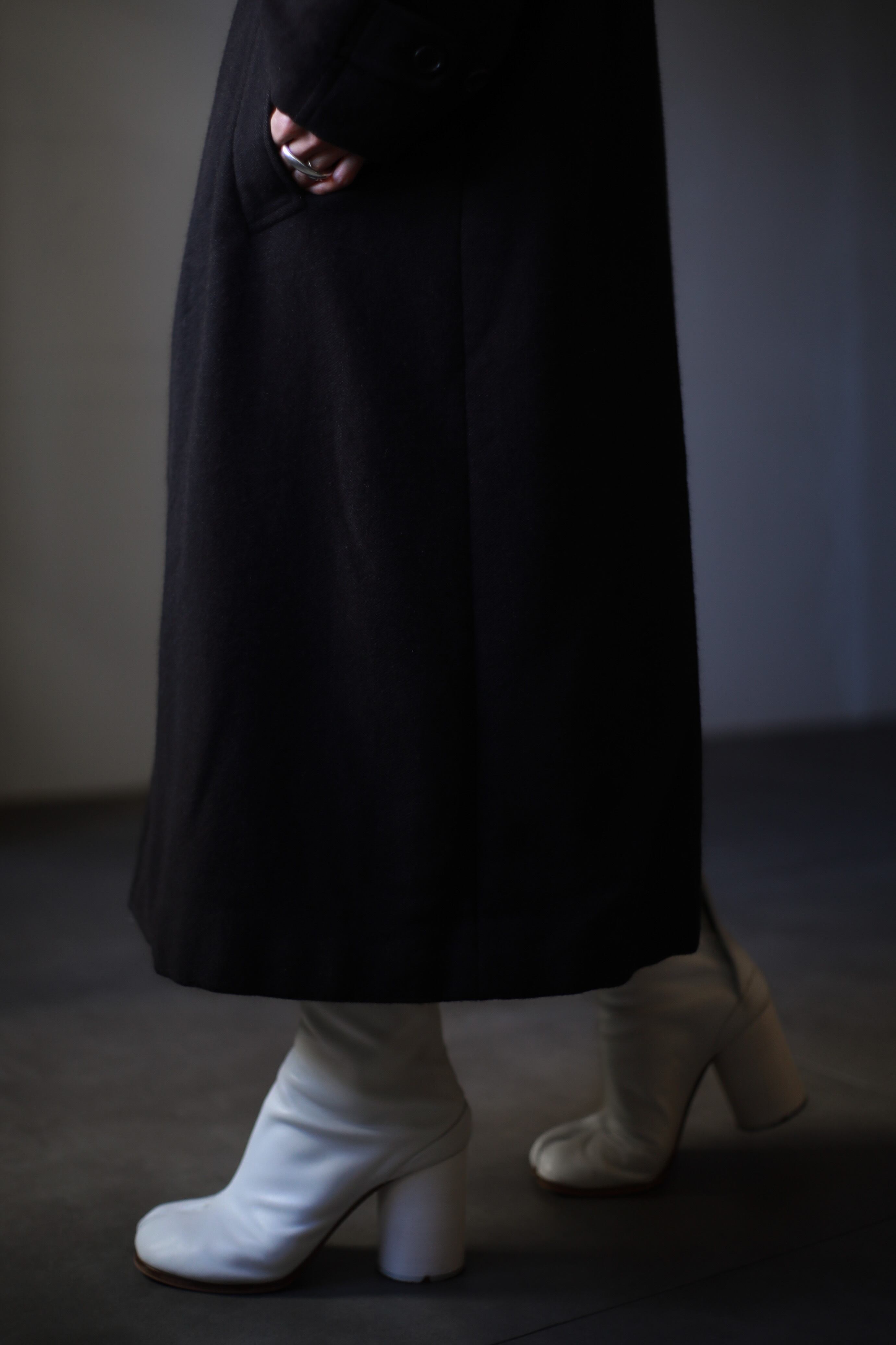 を体現するようなコートで着た時の感じが凄く良かったです。肩周りも動かしやすいですし、カシミヤミックスなので厚手ですが着た感じがそこまで重くなくてノンストレス。