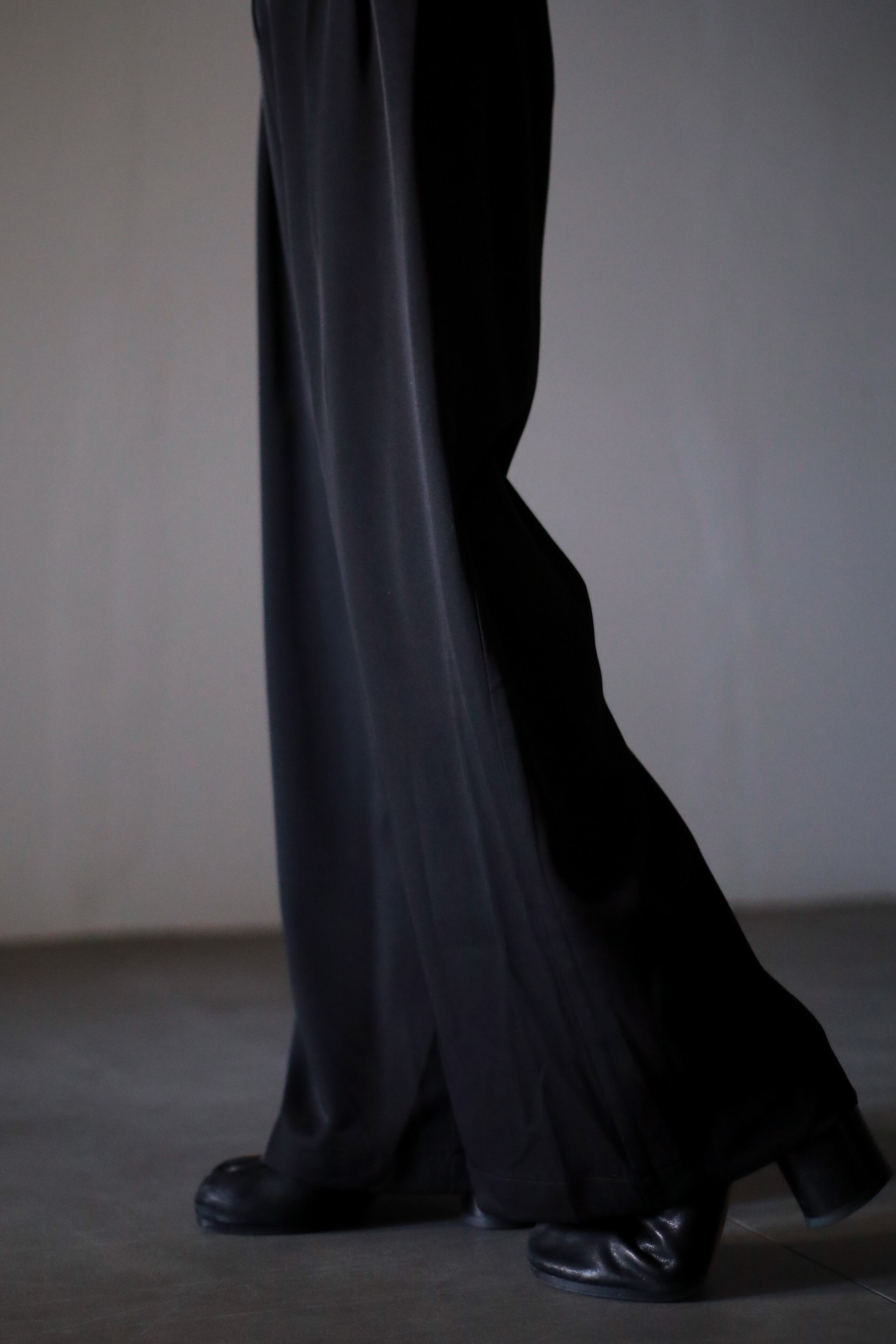 履くだけでスタイルがよく見える美しいシルエットで裾にボリュームがあるので足元の自由度も高く、スニーカーやサンダル、レザー系と何を合わせてもバッチリです。