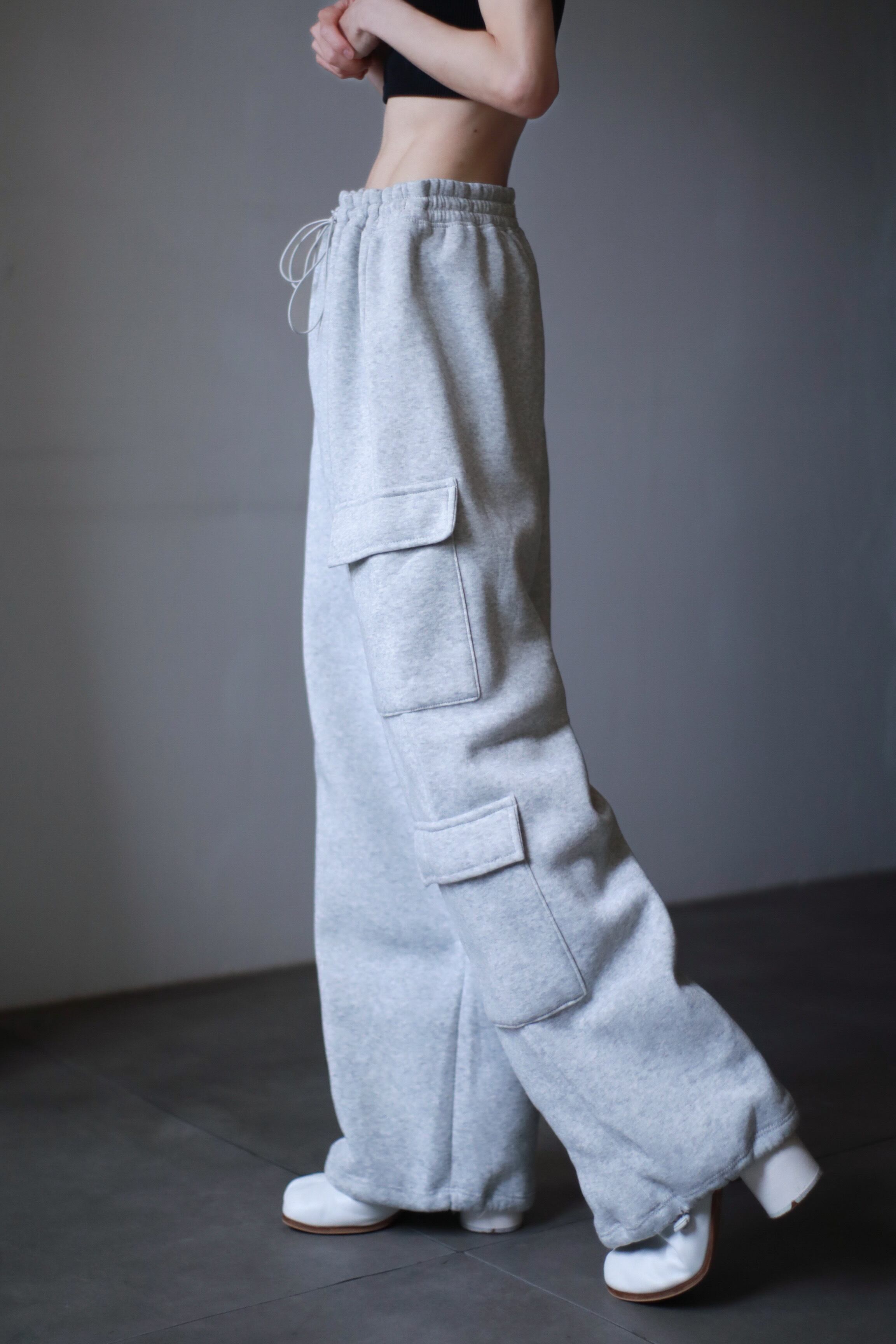 deadstock wide straight drawstring niren cargo pocket design sweat pants