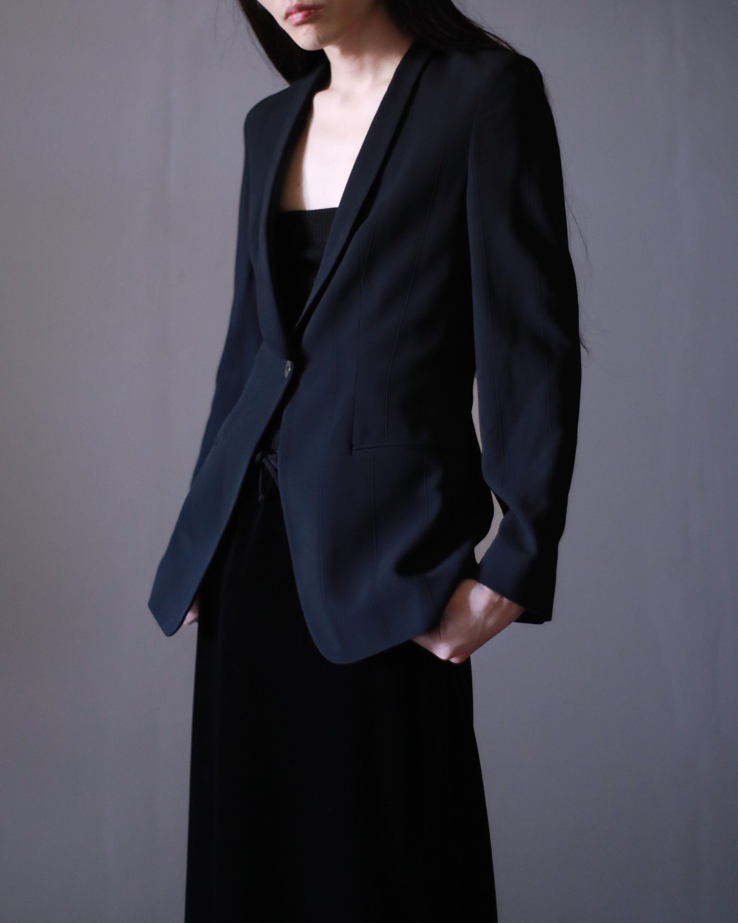 1980s GIORGIO ARMANI black label pleats fabric ancon tailored jacket made in Italy