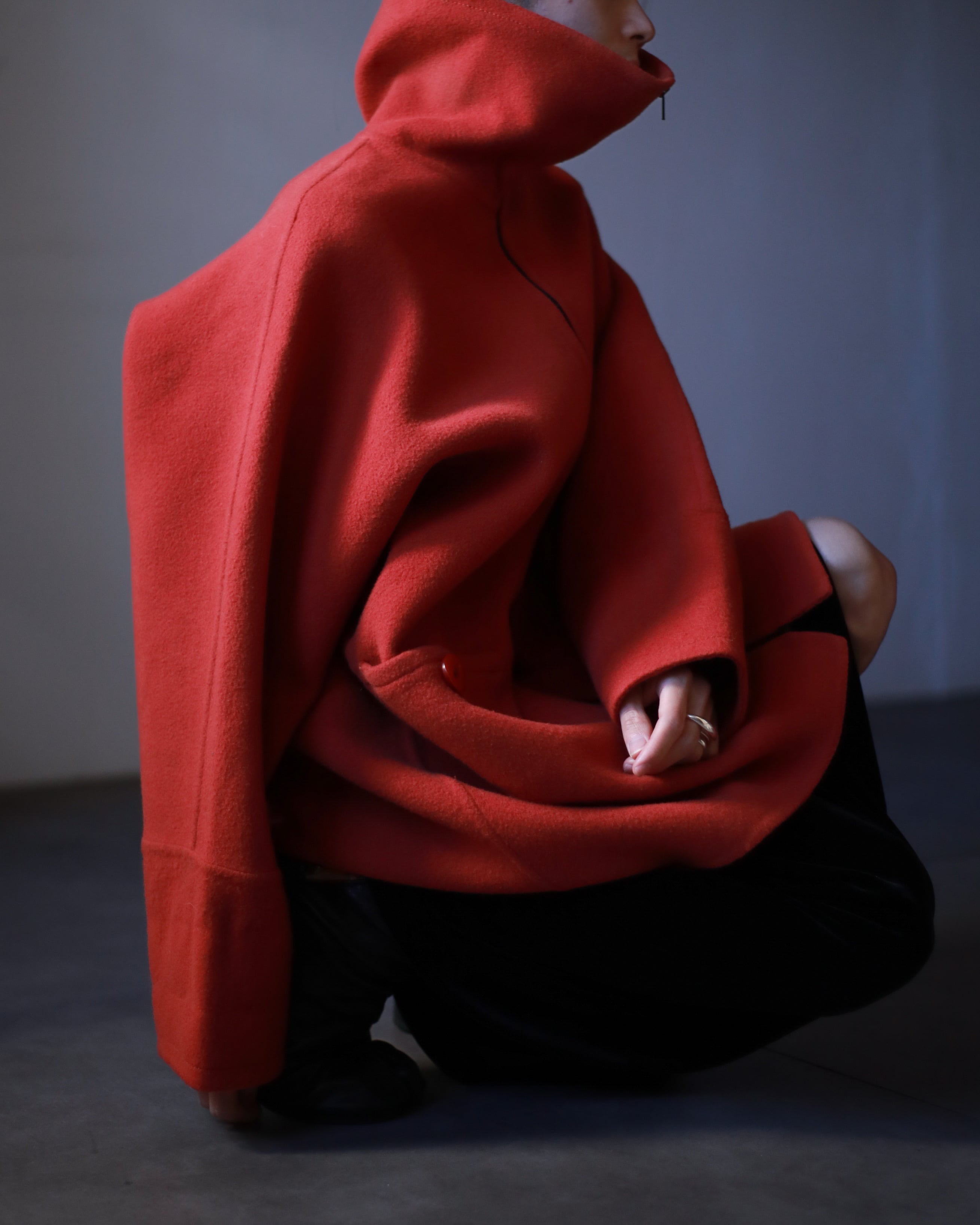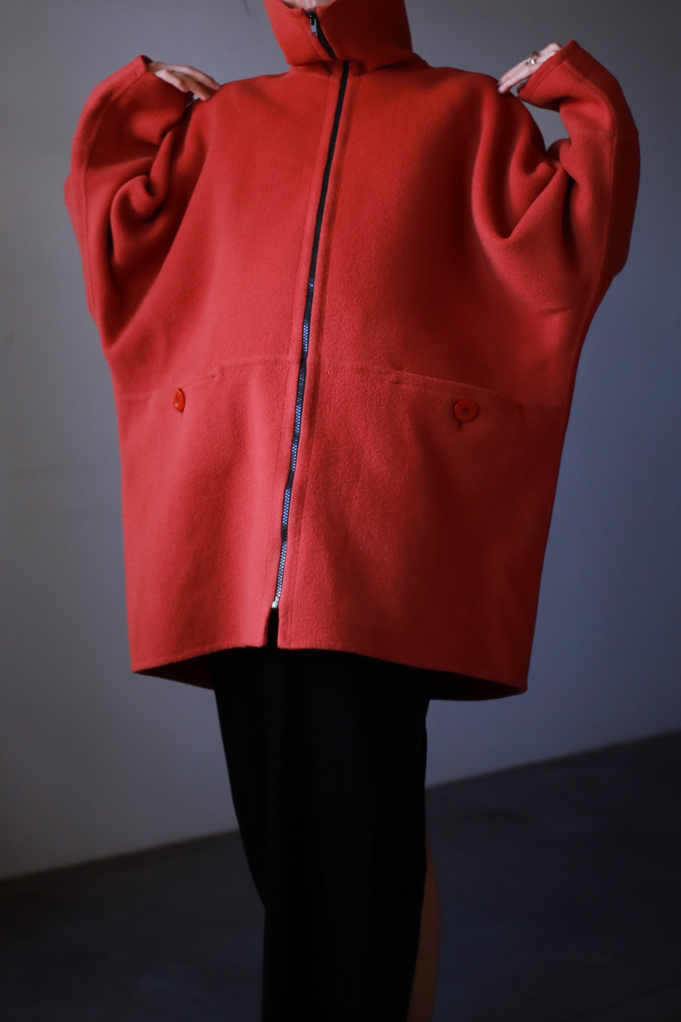 1990s super hi-neck dolman sleeve design fleece wool coat Made In Italy