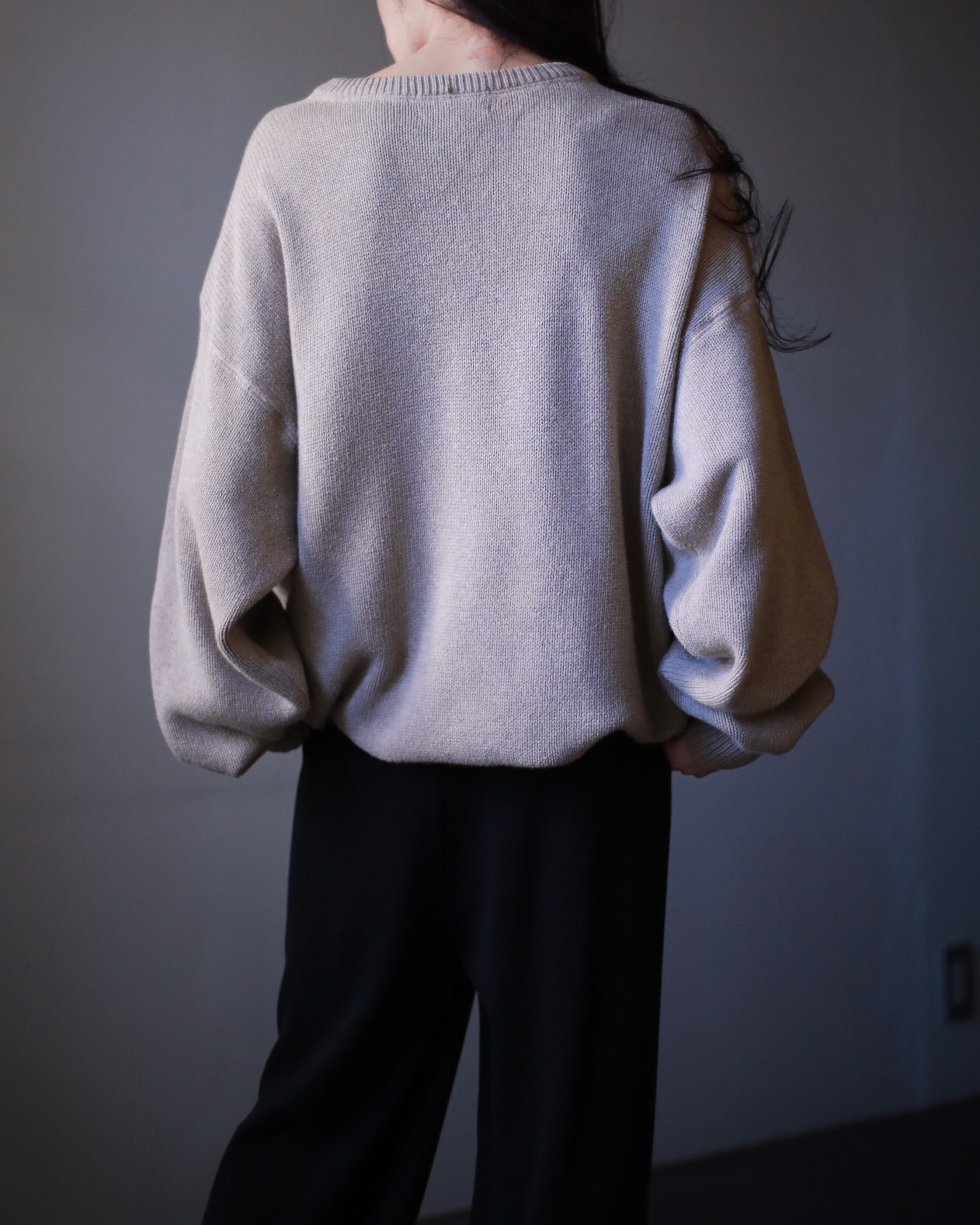 身幅が広くて着丈がそこまで長くない理想的なシルエット。アームホールなんかもゆとりがあって、ニットというかスウェットのような形です。