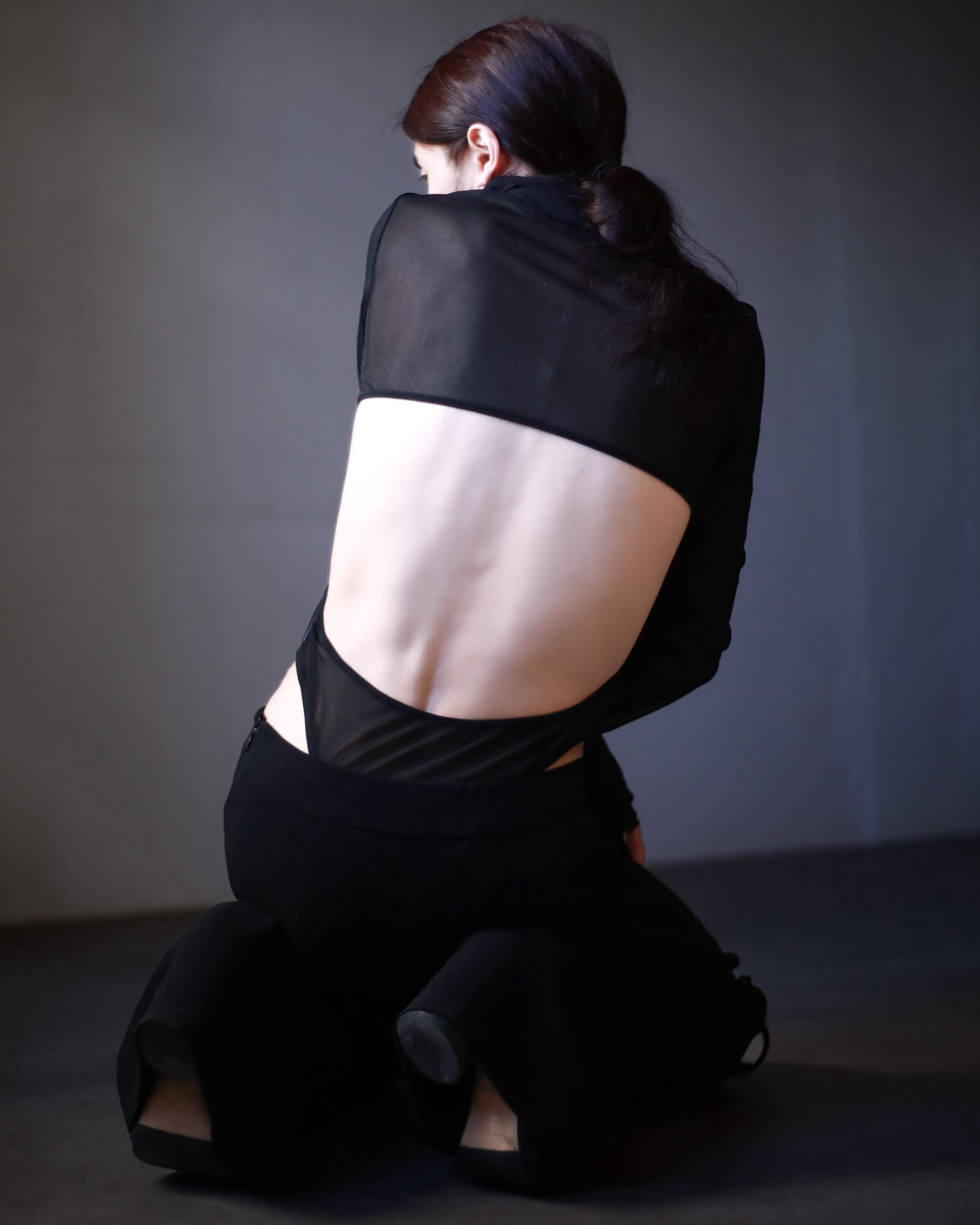 senaka paccaan kurinuki design sheer turtle neck bodysuit