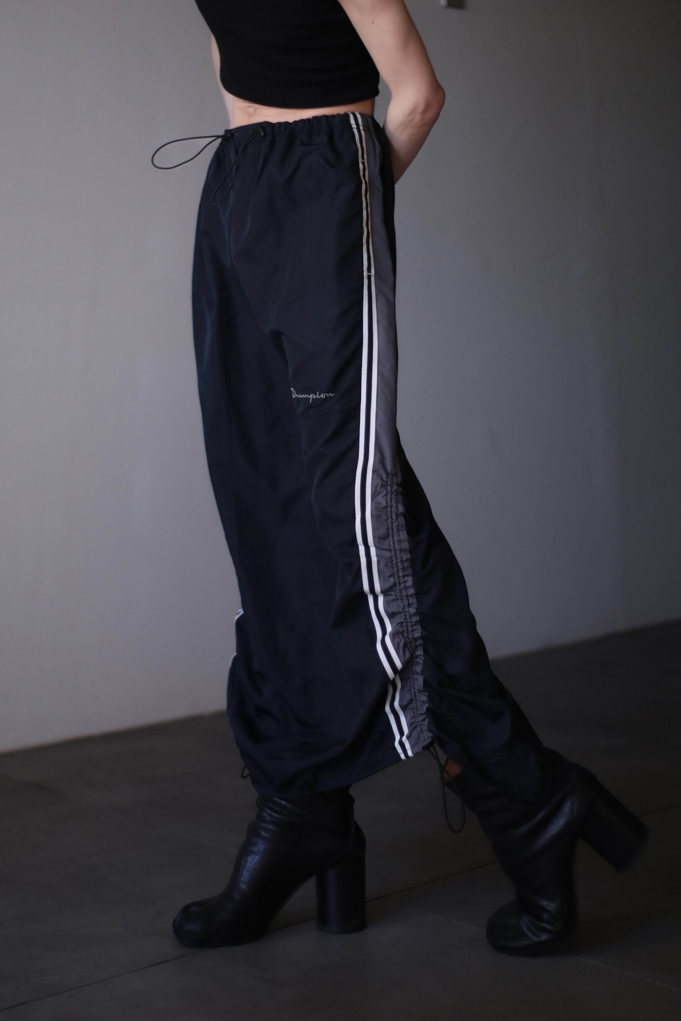ウエストと両サイド裾にドローコードが仕込まれているディテールで裾のドローはしぼると縦にクシュクシュとしてくれてデザイン性もバッチリです。