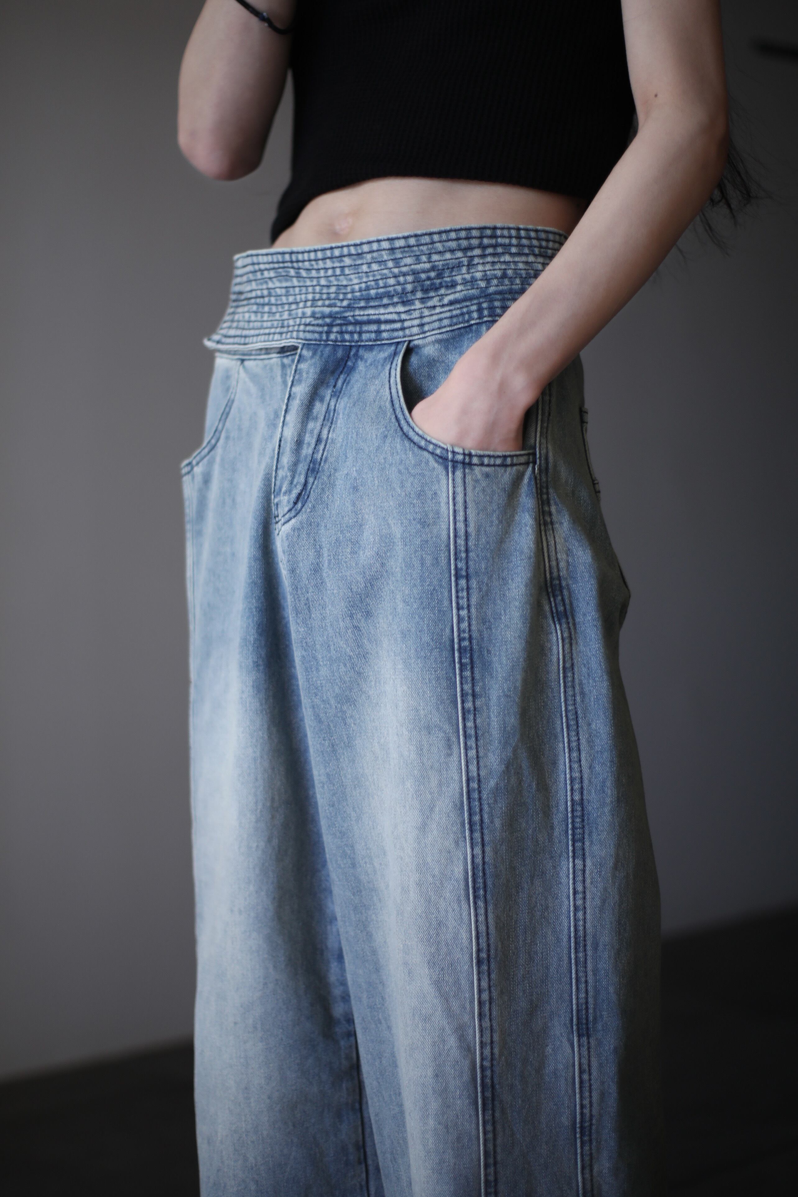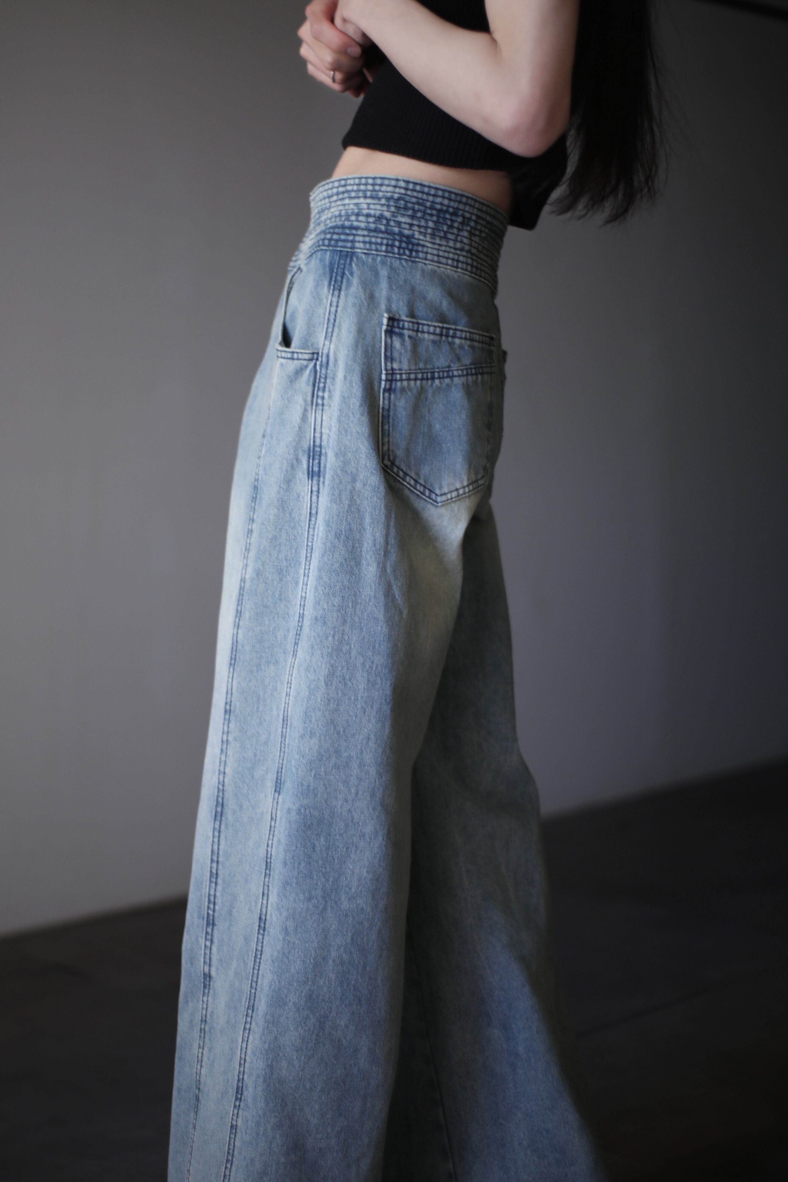 "haramaki" volume wide straight silhouette ice fade design denim pants