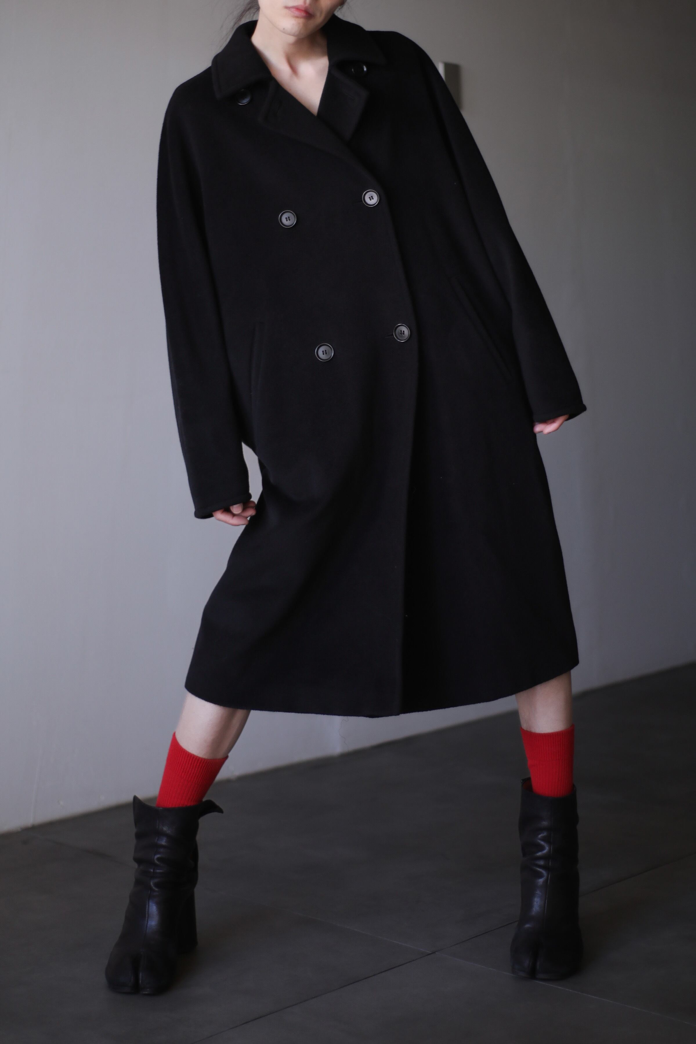 1990s MaxMara double breasted virgin wool over coat black color made in Italy