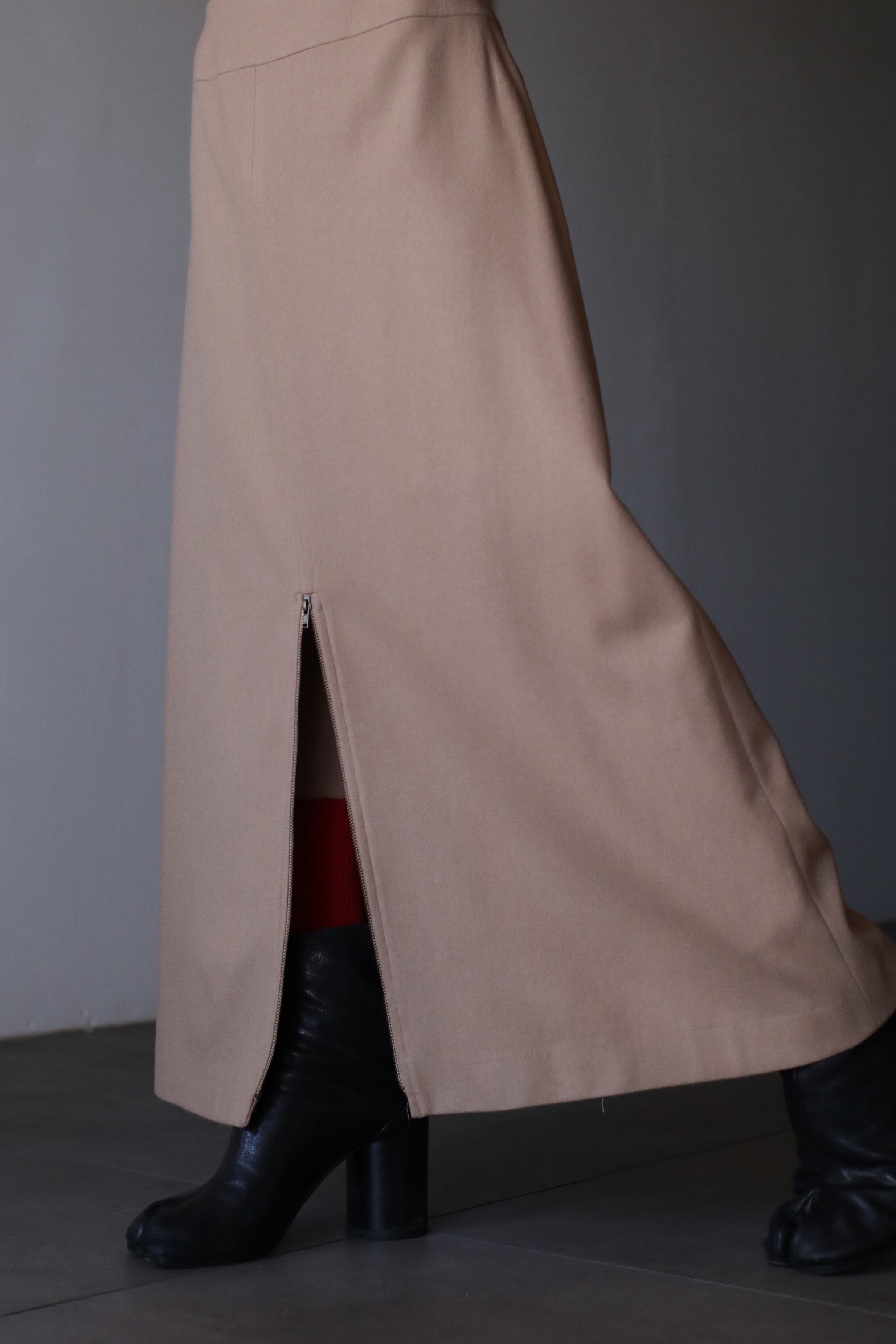 1990s felt wool fabric zip tech design long skirt