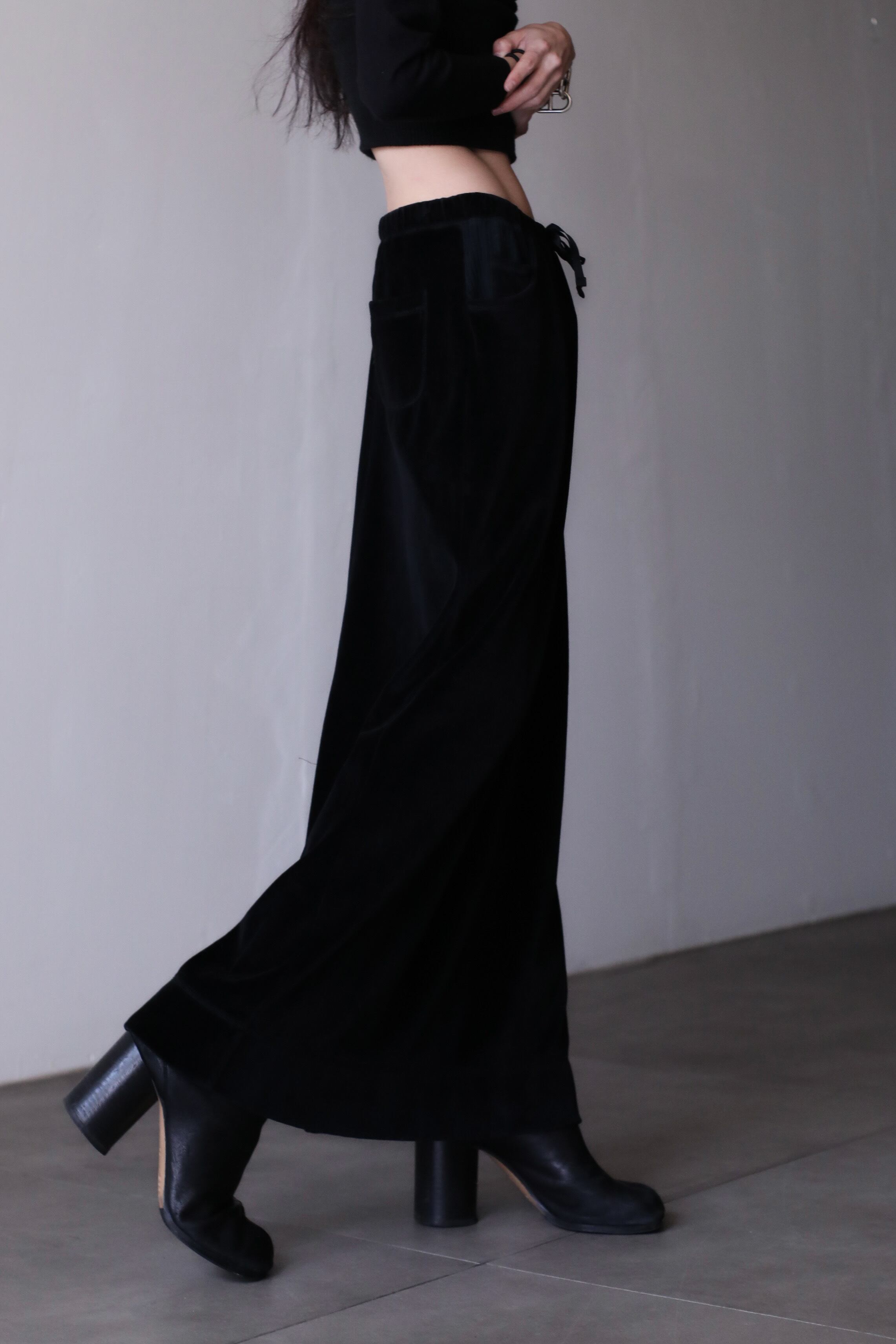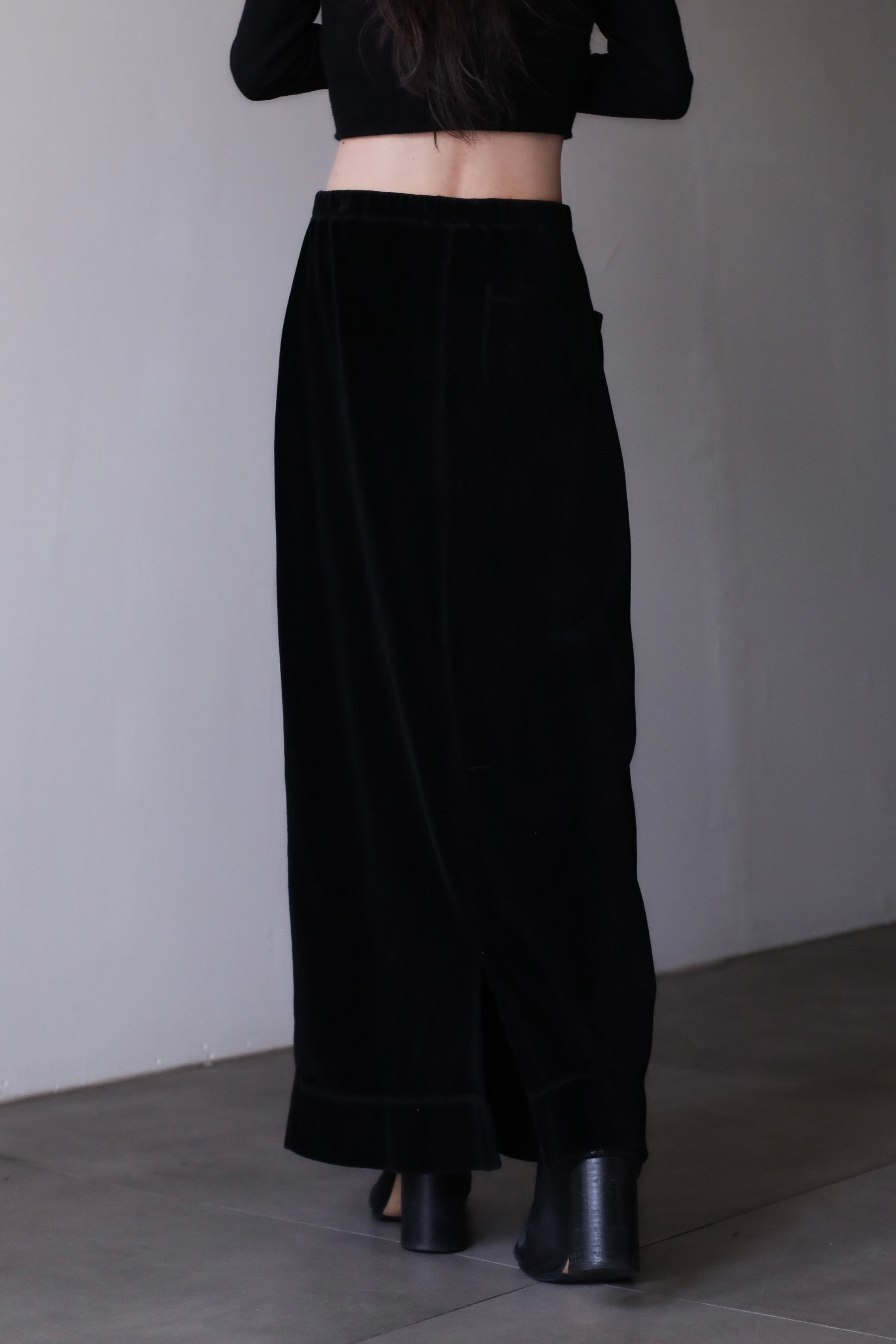 1990s velours knit pocket design drawstring long skirt
