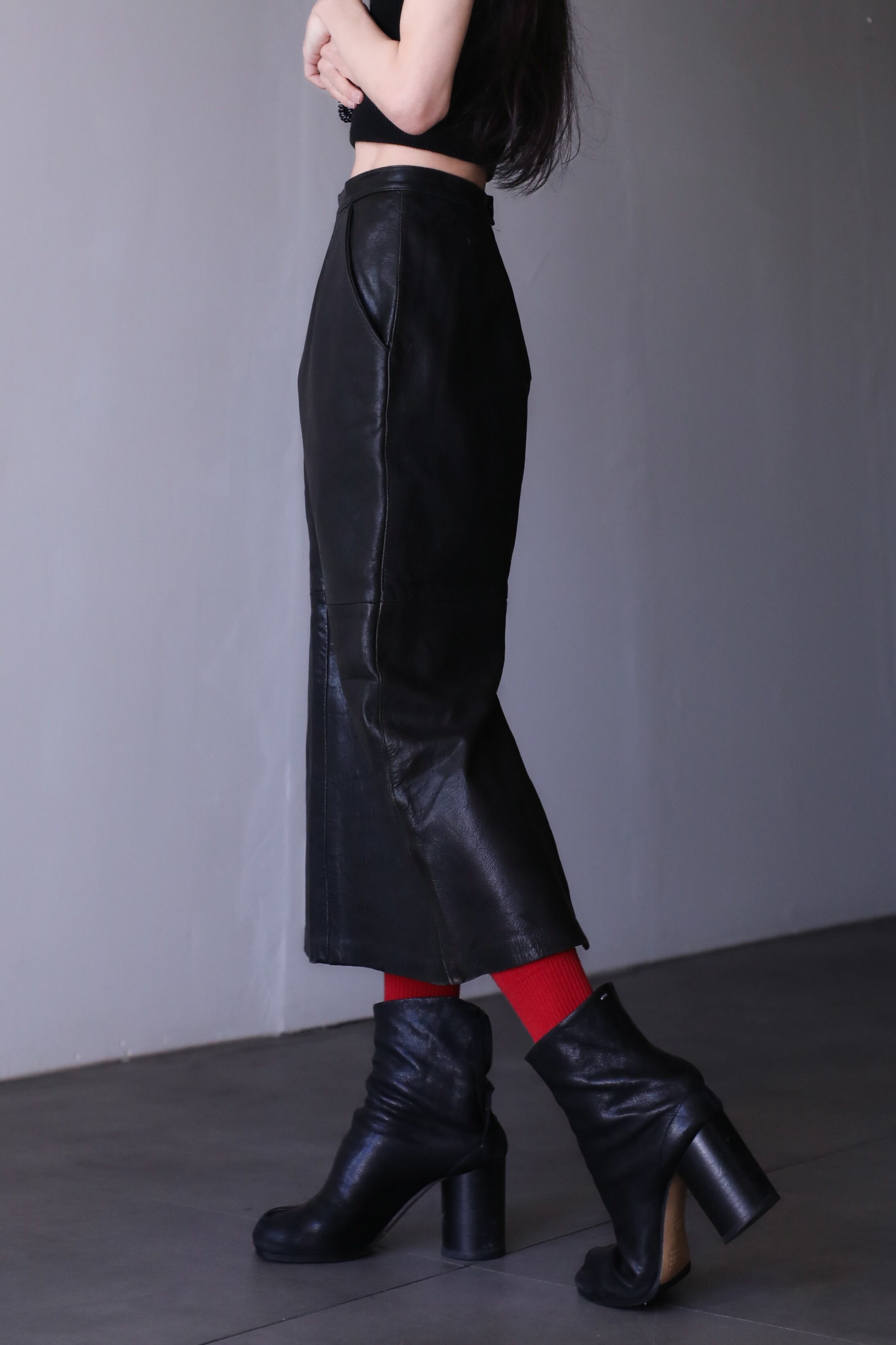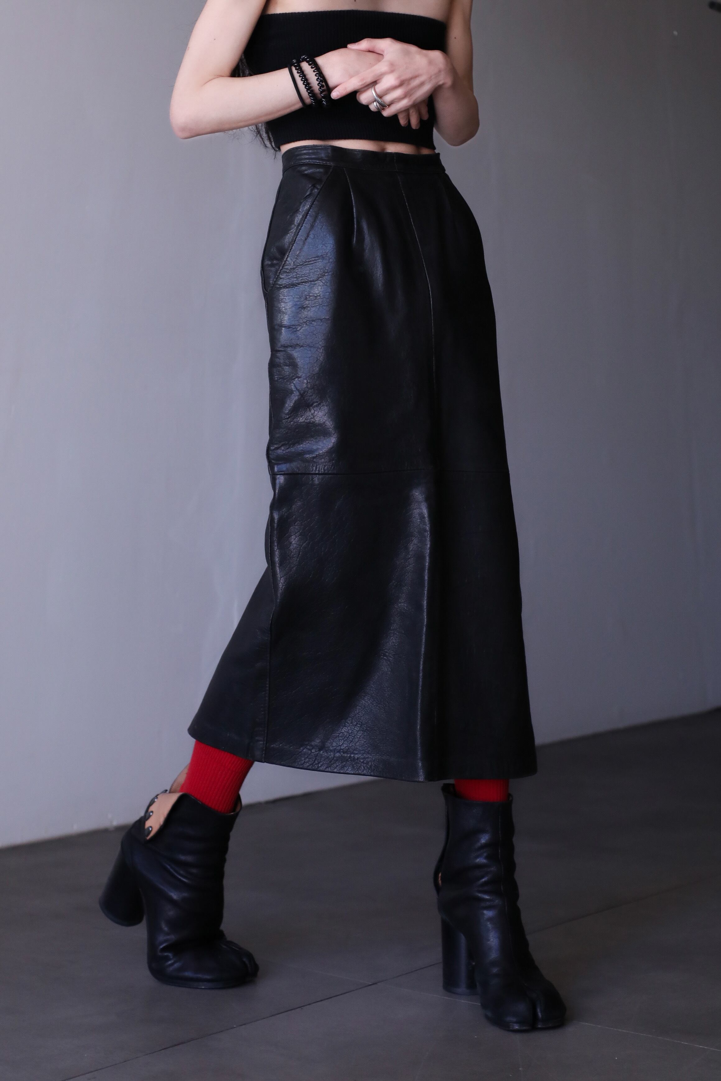 1980s "mochi mochi" leather long skirt Made In Canada
