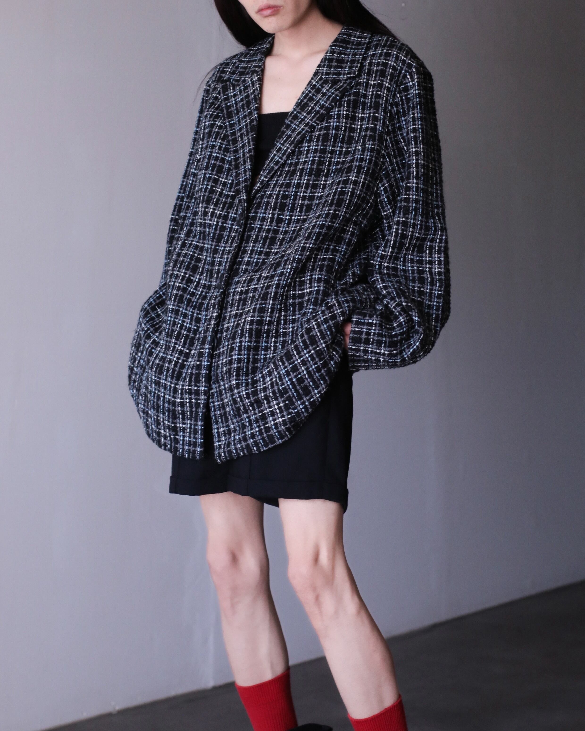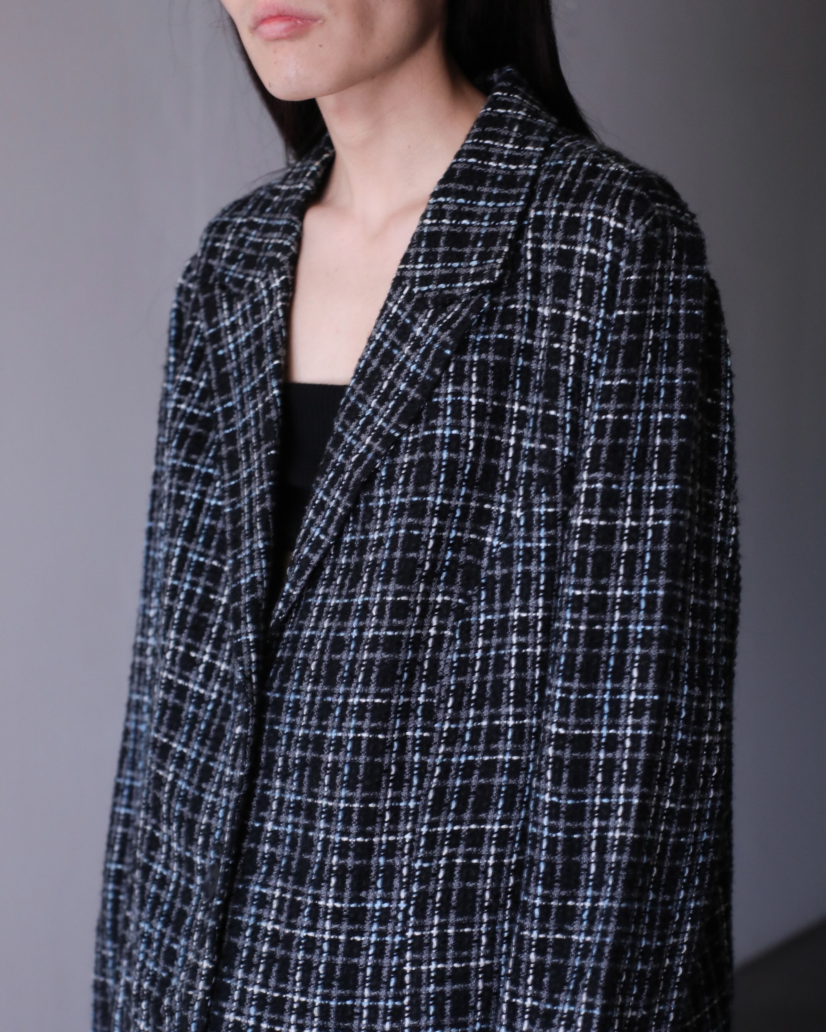 1990s tweed fabric pad less over silhouette tailored jacket oversized