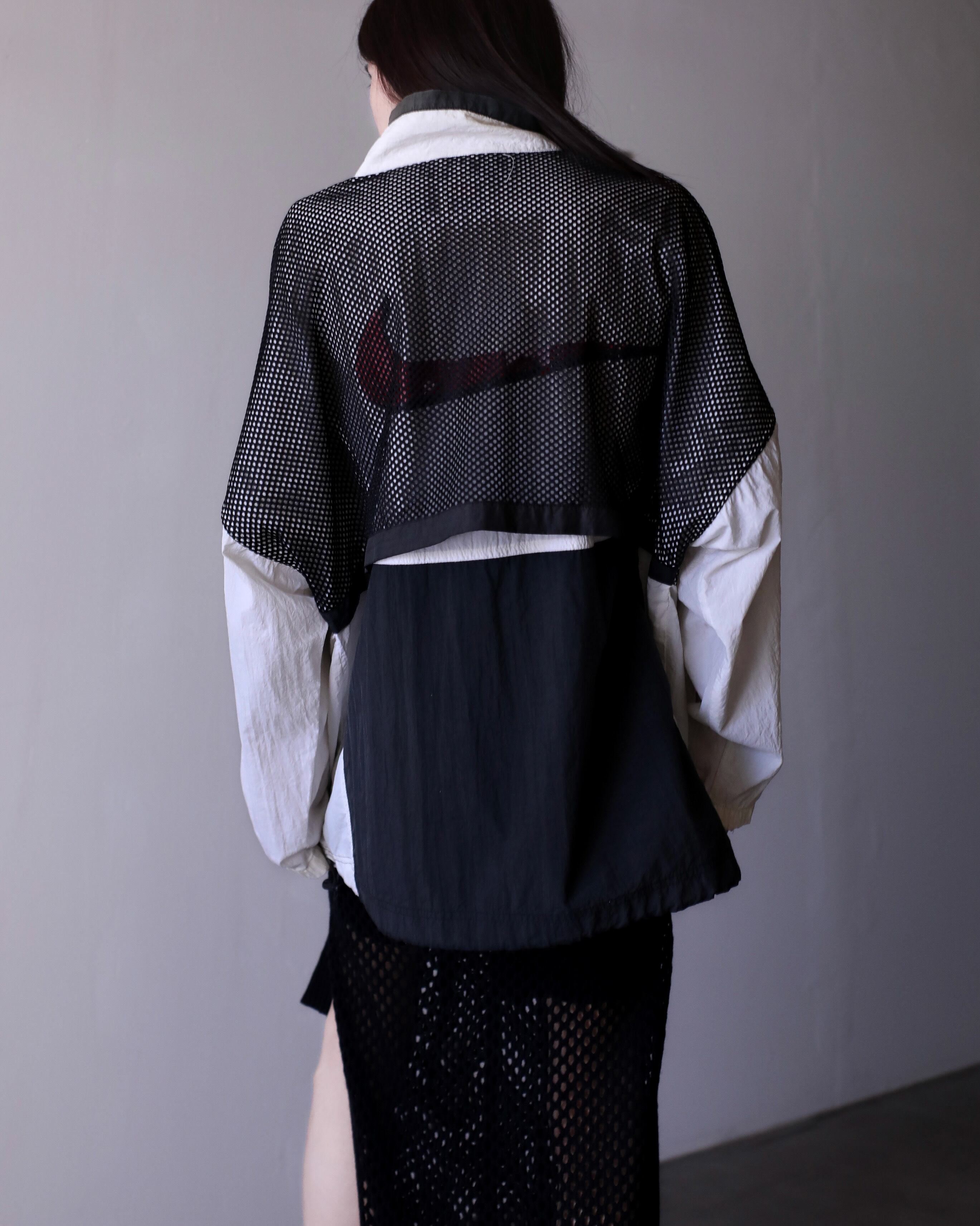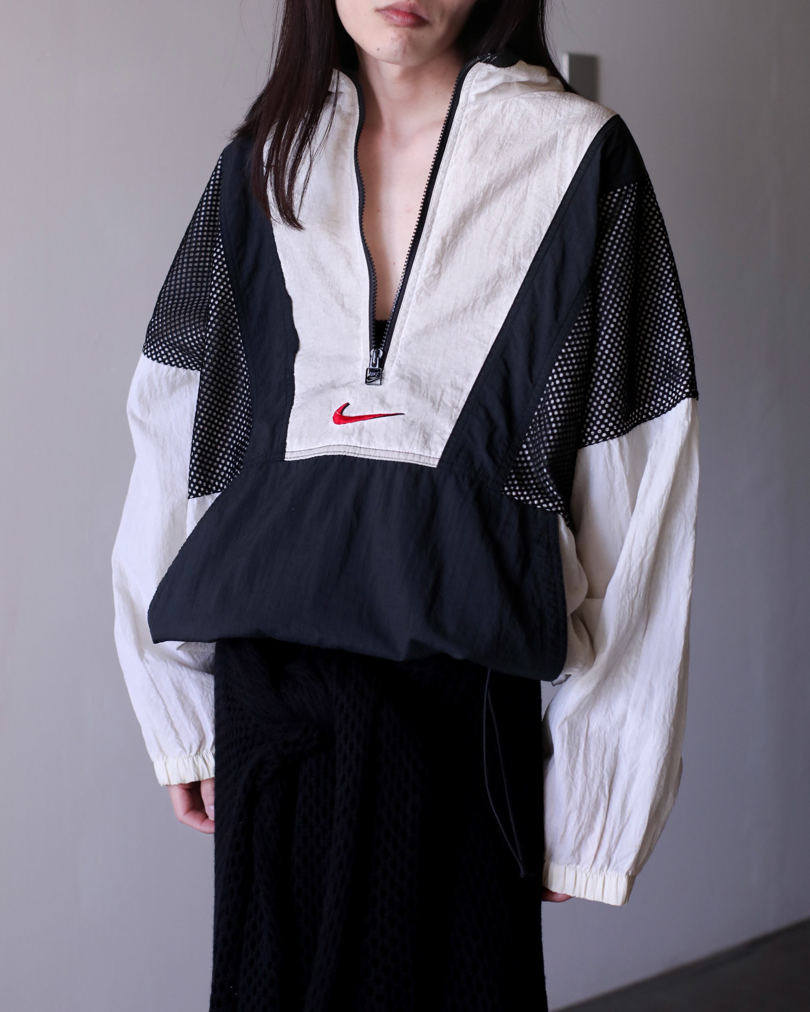 1990s NIKE big swoosh mesh layered design nylon half zip anorak top