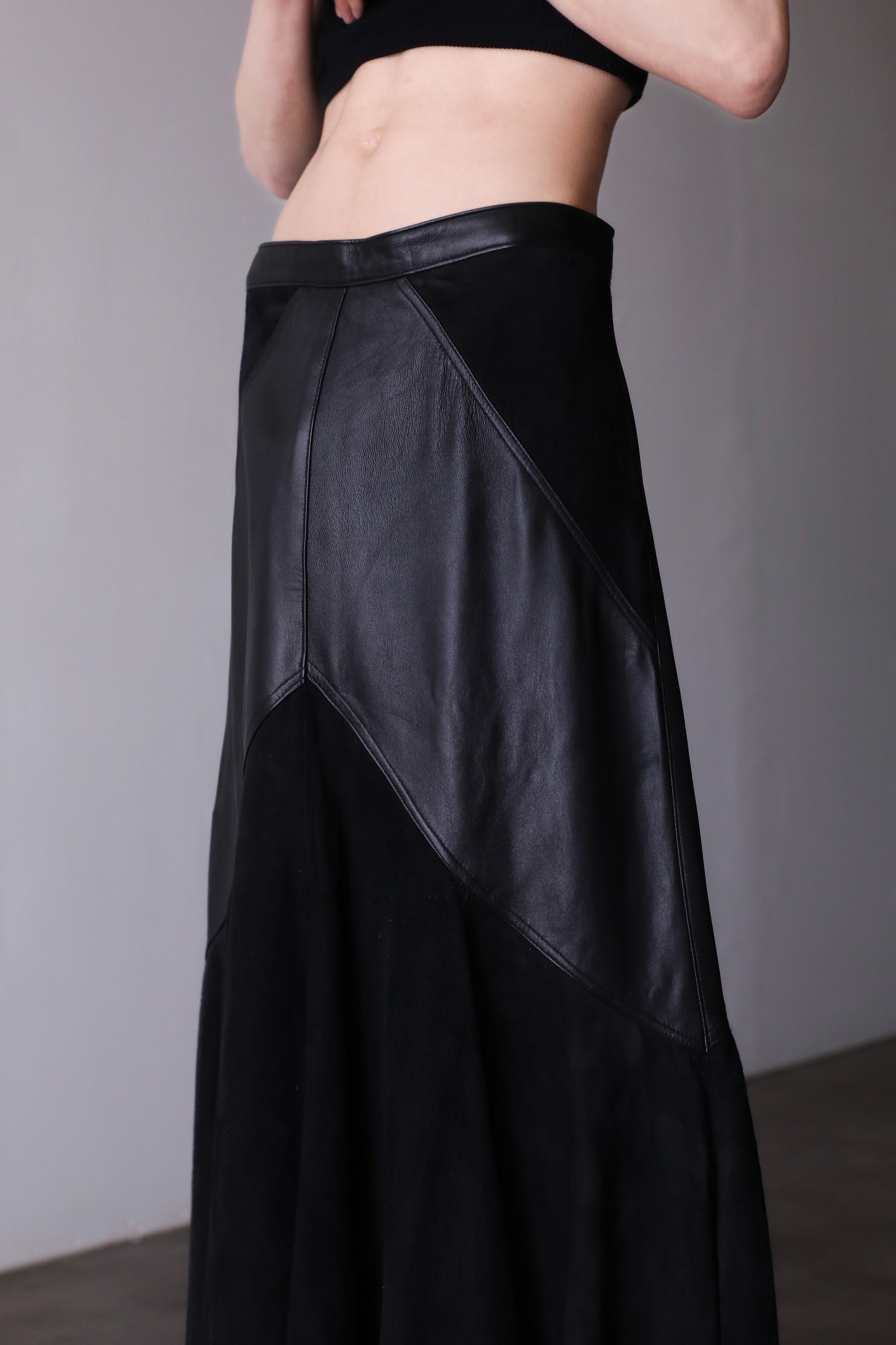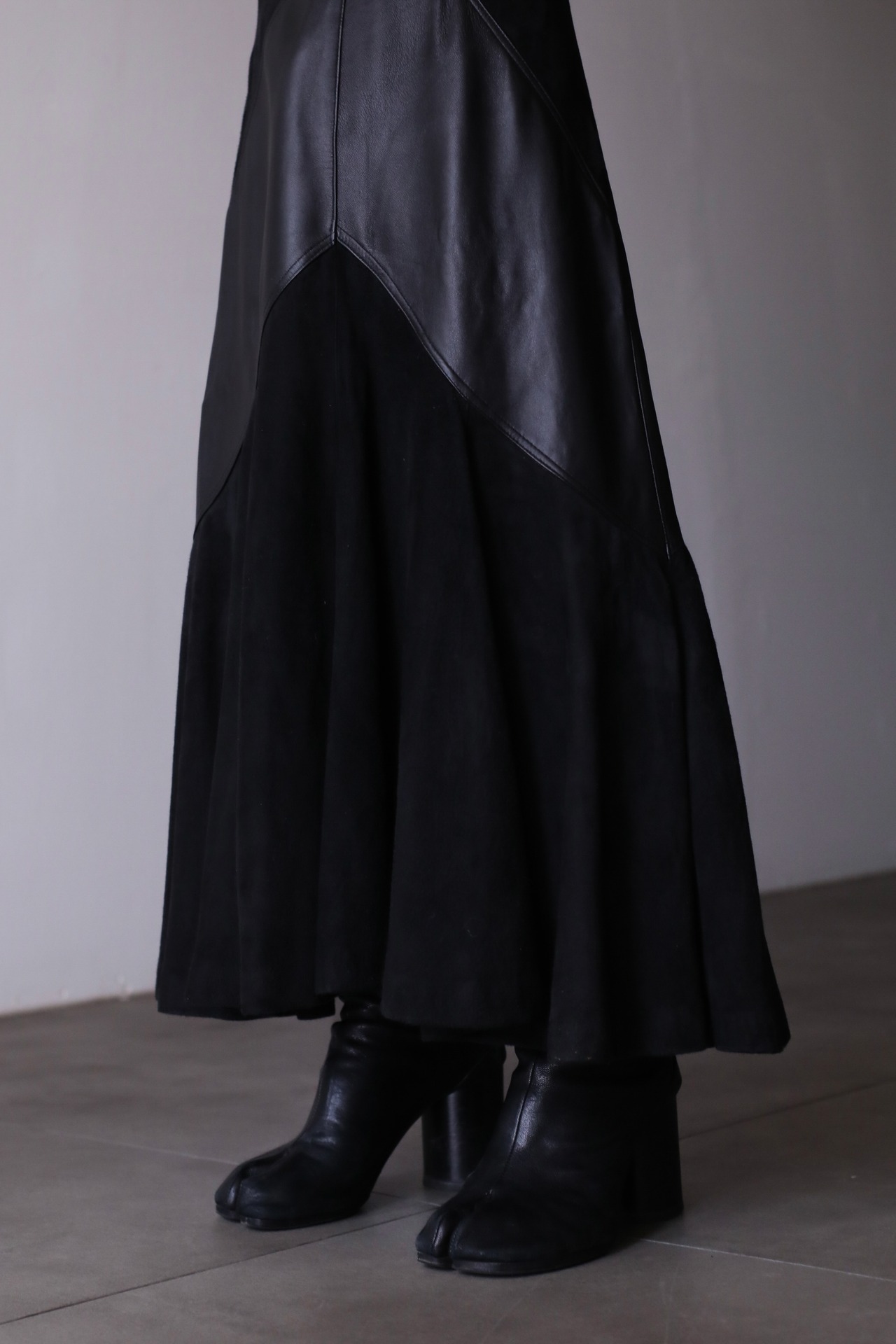 1990s lamb leather × suède leather switching design mermaid long skirt