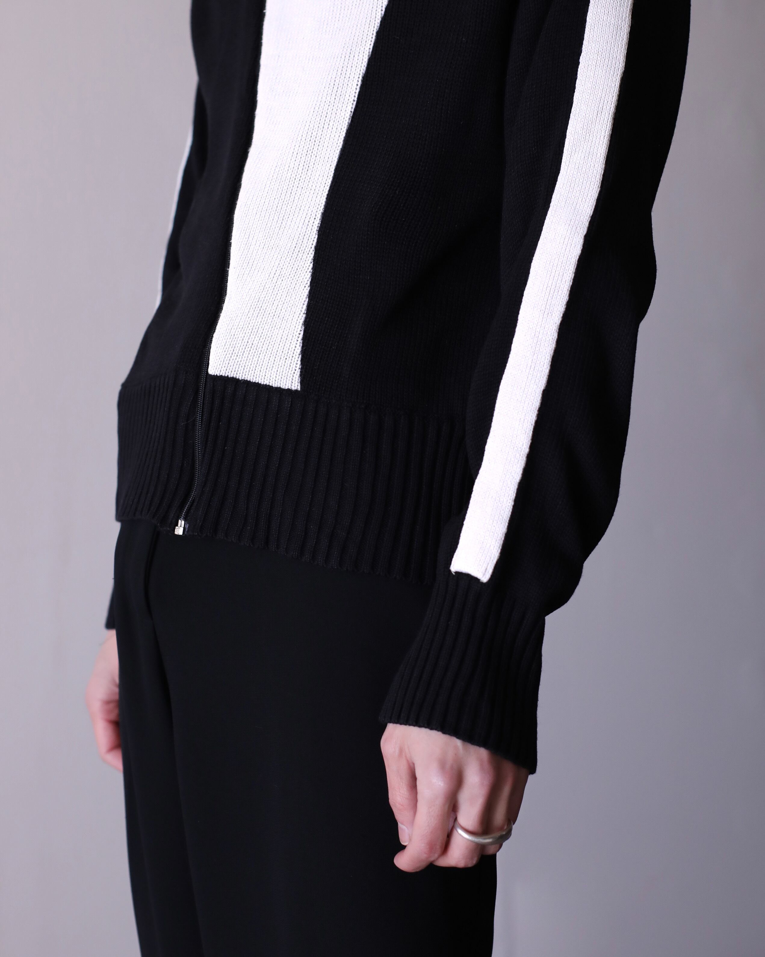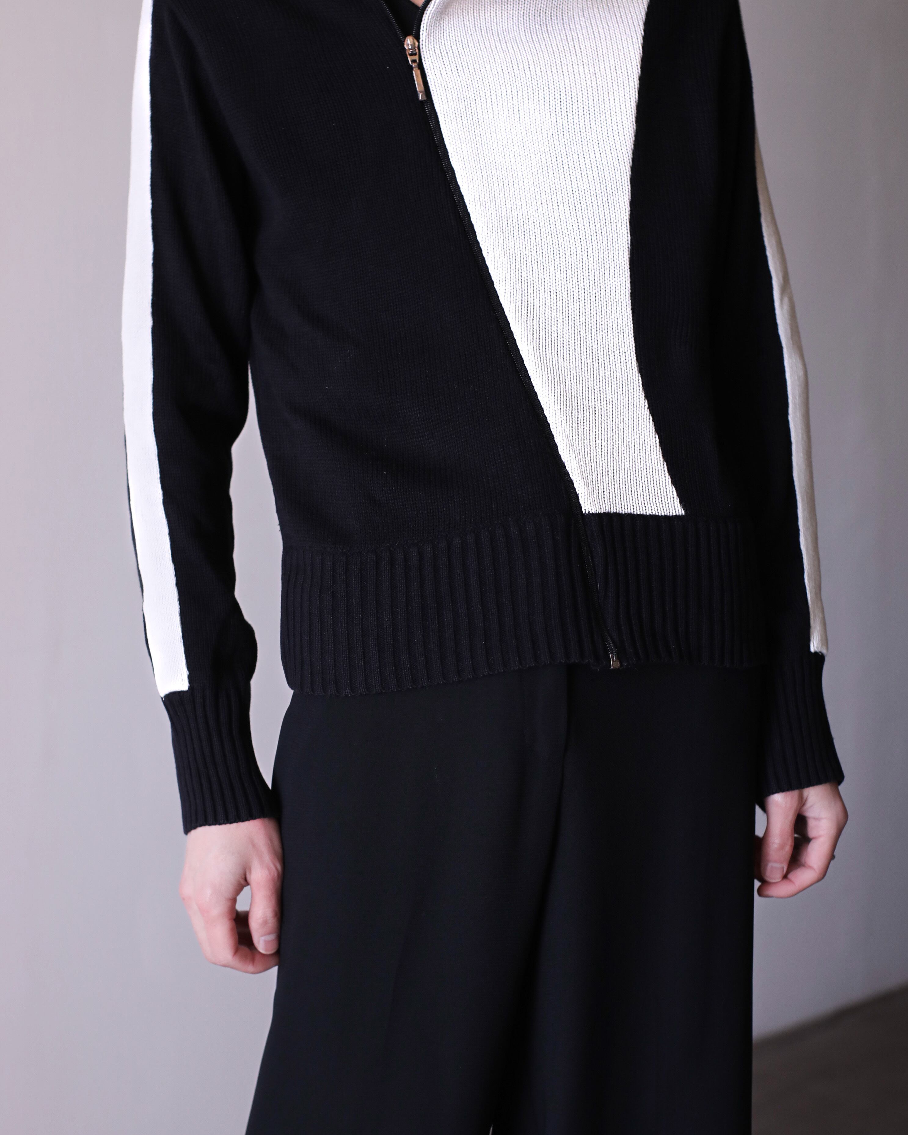 bi-color art design hi-neck naname full zip drivers knit